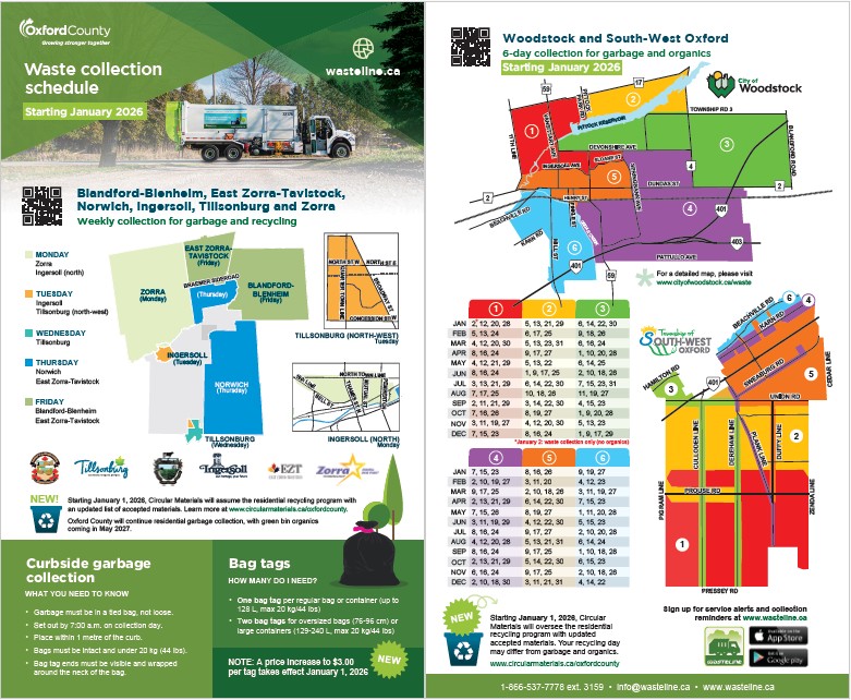 - Phase 1 will begin the week of January 5, 2026, for all residences, registered multi-residential facilities, and businesses located in the City of Woodstock and the Township of South-West Oxford (SWOX).